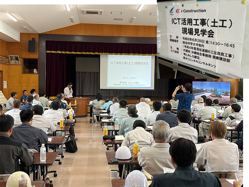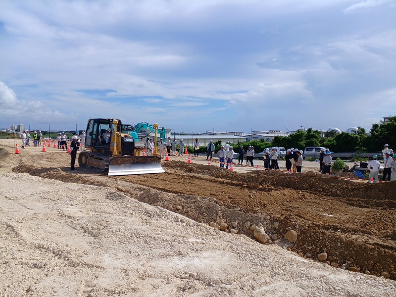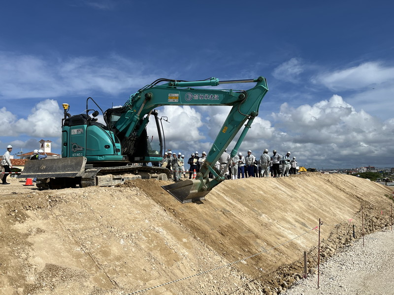 2024.06.28 令和6年6月28日、ICT活用工事(土工)現場見学会を当社現場にて開催しました。 【主催:沖縄総合事務局開発建設部】【開催現場:令和4年度読谷道路6工区改良工事(読谷村字大木地内)】 令和6年6月28日、沖縄総合事務局開発建設部主催のICT活用工事(土工)現場見学会を当社現場において開催いたしました。この見学会は、現場における「ICT技術の全面的な活用」の推進を図ることを目的としたものです。連日の暑さにもかかわらず、当日は多数の業界関係者(工事発注機関および建設業者等)の皆様が参加され、説明会・現場見学会を通して理解を深めました 現場見学(試乗体験) 説明会 ICT建機(バックホウ)施工デモ ICT建機(ブル)施工デモ 現場見学 現場見学 ご参加くださった関係者の皆さま、ありがとうございました。また、会場準備等に携わった現場スタッフの皆さん、おつかれさまでした。 株式会社 とみしろ建設のホームページを公開しました。 >